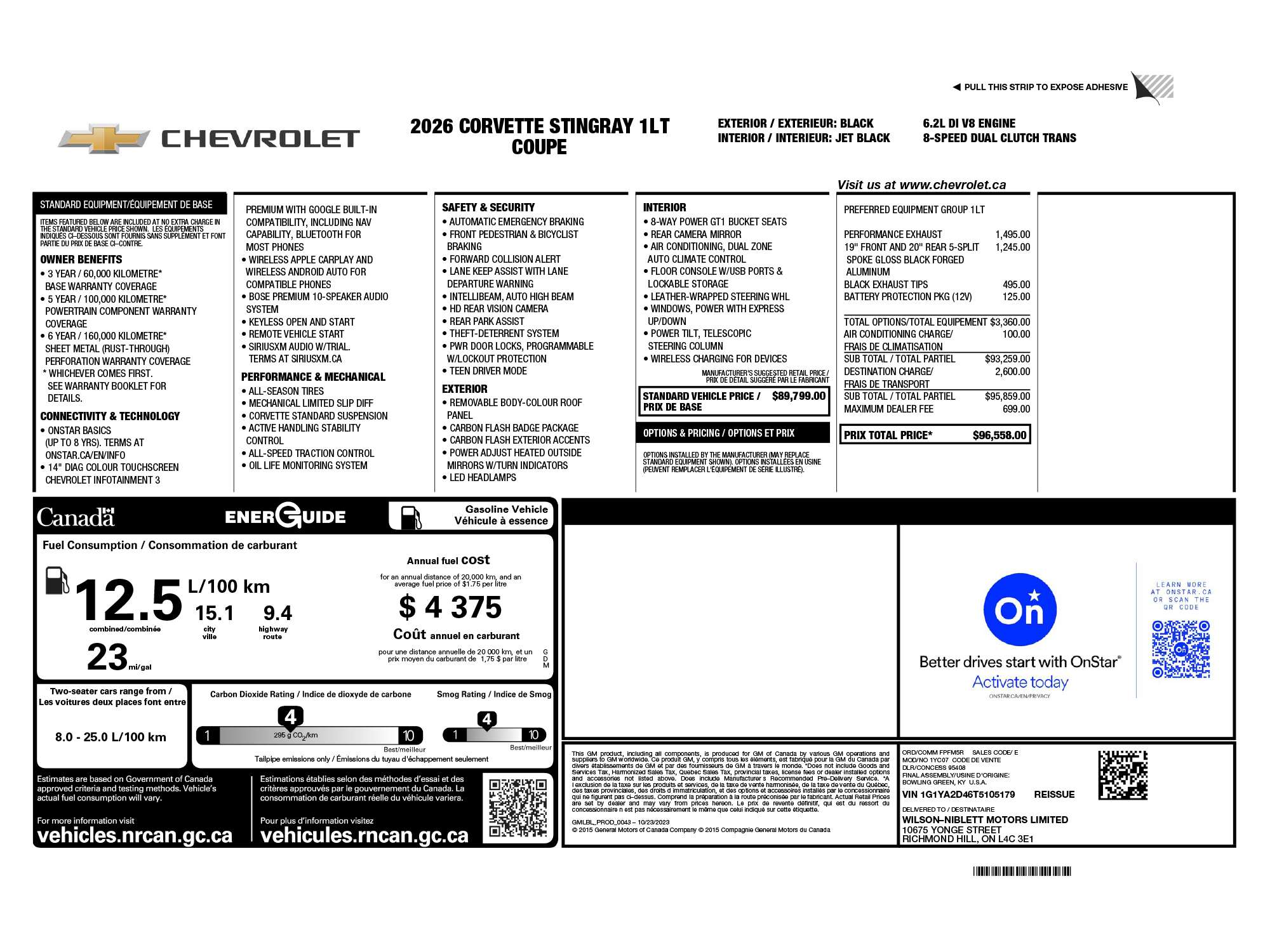 2026 Chevrolet Corvette 1LT- Performance Exhaust | Black Forged Wheels | CA$91,859.00
