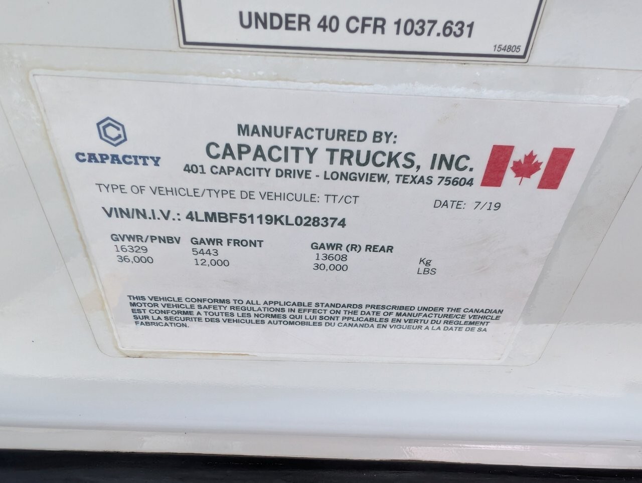 2019 Capacity TJ5000 DOT
